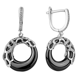 Серьги из cеребра 925 пробы с фианитом и керамикой