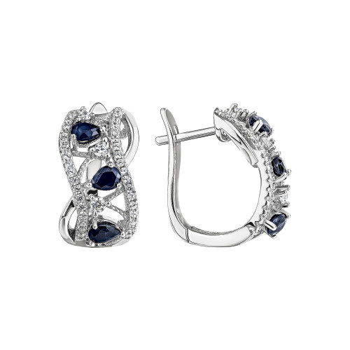 Серьги из cеребра 925 пробы с сапфиром и фианитом