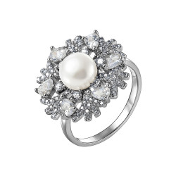 Кольцо из cеребра 925 пробы с фианитом, фианитом и перламутром